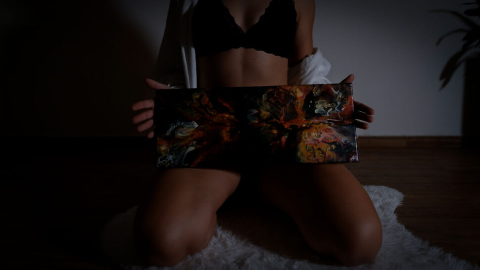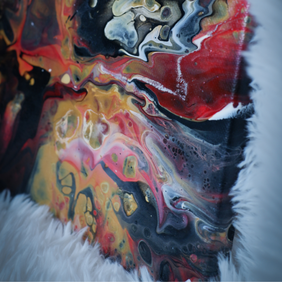 Velikost obrazu je 20 x 50 cm. Je tvořen technikou pouring, tedy litím akrylových barev na bavlněné plátno, které je napnuto na dřevěném rámu. Na závěr je použitý fixační bezbarvý lak s UV ochranou. K horní části obrazu je zezadu připevněna úchytka pro snadné zavěšení na zeď.